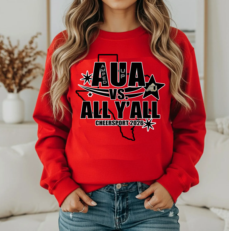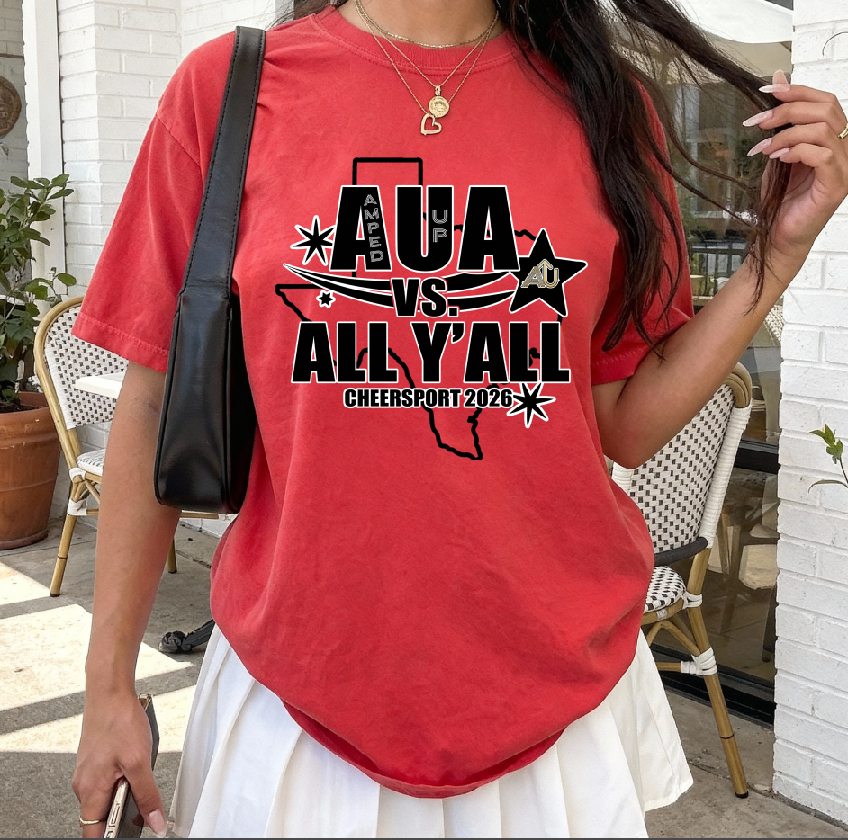 It's the Texas takeover as AUA takes the stage in Atlanta, Georgia for Cheersport 2026! Let's go give 'um our Amped Up spirit! Available in youth and adult sizes.